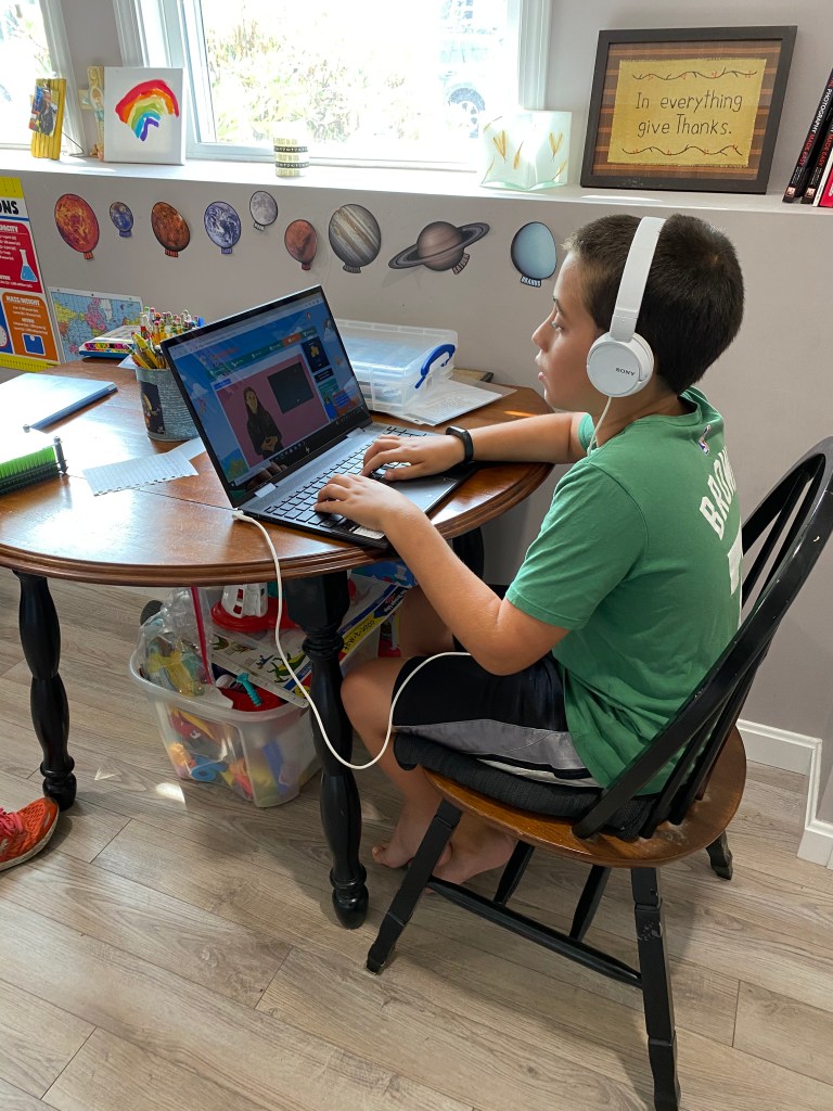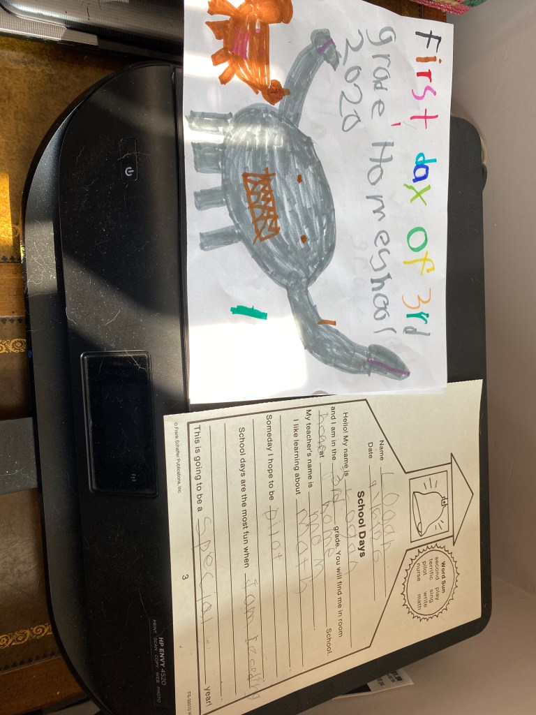 I chose to keep today simple as this is new for all of us-I didn’t want anyone to go to bed tonight stressed out, overwhelmed, or with regrets. It is also a short week so we are keeping it simple for the week. I made a schedule that really did prove to be a guide as I thought back on some really great advice that I was given from some seasoned and invested homeschool mamas-don’t try to recreate school, everything is a learning opportunity, if something isn’t working take a break or change it, be flexible, have fun… I love schedules so I’ll admit it was hard to not stick to it at every turn. It was hard to not drag my 11 year old out of bed(typically my early riser), it was hard to tell my 9 year old that yes-he could finish his drawing even though our time was up, it was hard to be flexible but I’m glad that I had that advice fresh in my brain and that I was able to follow that advice. I think it made the day go smoother. And it was worth it when I saw smiles and pride. They enjoyed the online program I signed them up for. They enjoyed their morning work boxes. They enjoyed some OT time together(something My 11 year old never qualified for but I always felt he needed). They enjoyed typing practice and drawing and bible games. They enjoyed quiet reading time. And I think they took pride in a job well done as I taught them to do some new chores. Today was not what I imagined it to be-but you know what? That’s ok-because today turned out exactly the way it was supposed to.