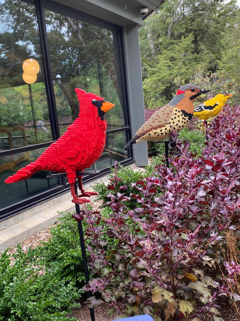 Our first “field trip” was scheduled for tomorrow-on travel Tuesday-for 1 reason-it is a day that the five of us can be together. So when Kenny scheduled an appointment for mid day Tuesday, we made an adjustment to our day and our destination. Yesterday we visited Heritage Museum and Gardens. This place on Cape Cod is like a botanical gardens and fun museums all wrapped into one. The grounds are huge, 100 acres I believe. We got to explore an automobile museum, an art gallery, a toy museum, an outdoor discovery area, a labyrinth, a maze, and take in gorgeous scenery. We spent the whole day outside, nature as our classroom again. We are so blessed to live near so many awesome sites! The boys all enjoyed the cars in the automobile museum. We learned about President Taft’s car and a bit about Henry Ford. I don’t think I have ever toured a labyrinth before-it was really neat to follow the carefully made path and to read the history of it-it is not a maze! The flowers and the trees were beautiful and I forgot to mention, the biggest draw to go there was to see the LEGO display of butterflies, spiders, bees, birds and more scattered throughout the grounds. So even though yesterday was Sunday-I am counting it as a homeschool day!