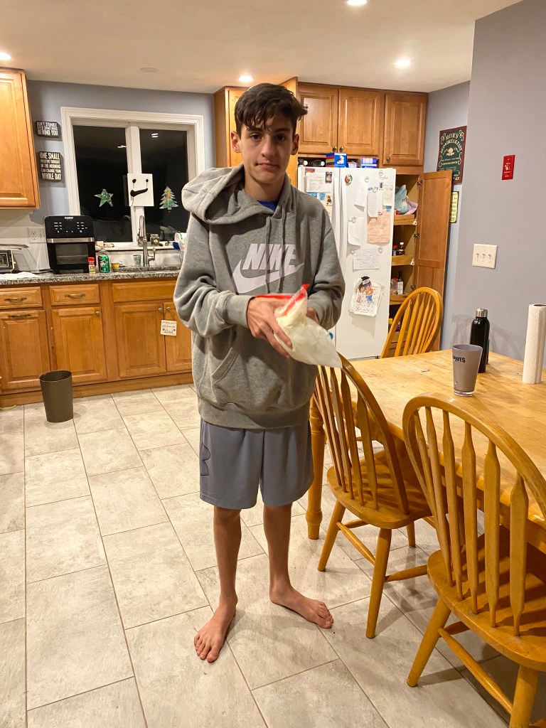 Today I tried to squeeze in as much as possible. Lots of writing with Logan. Lots of reading for Evan. I even talked Christopher into doing some cursive, Spanish, and journaling(since he was done with his school work by 9:30am). We got a beautiful afternoon at the park with friends and to top off the day in keeping with our space theme-we made ice cream in a bag-well we attempted ice cream in a bag-I poured them into cups and topped them off with chocolate chips-so I guess it was more like milkshakes in a bag. At one time not too long ago-my boys would have enjoyed a dance party to songs that had the word shake in it(seeing as we needed to shake that bag for 15 minutes), tonight-not so much😭 Now I have a goal-I’ll try again tomorrow with a different soundtrack🤪