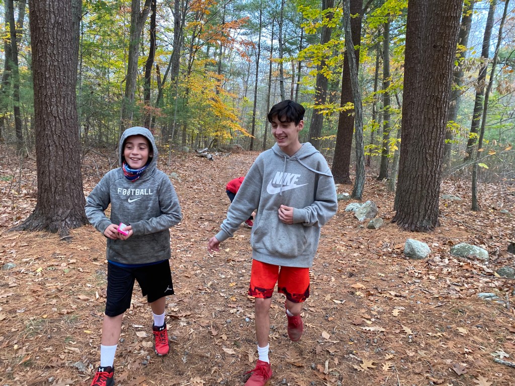 Yesterday-knowing that we were about to have some rainy days ahead and that we would not have a field trip this week-forced a family hike. There were some attitudes-people wanted to do other things. But I keep remembering what my hubby said after our initial game night debacle when I looked at him crestfallen and said, “I don’t think we should play games anymore.” He looked at me and said, “we have to.” So despite the bad attitudes in the car, pushing aside the fact that every part of me wanted to give in and just go home-for the peace of it all-we found a parking spot and trekked through the woods into what turned out to be a pretty cool spot. Unfortunately we didn’t get to stay long at that point-but now we know where to explore more next time. And best of all-we left in better moods than we arrived in.
