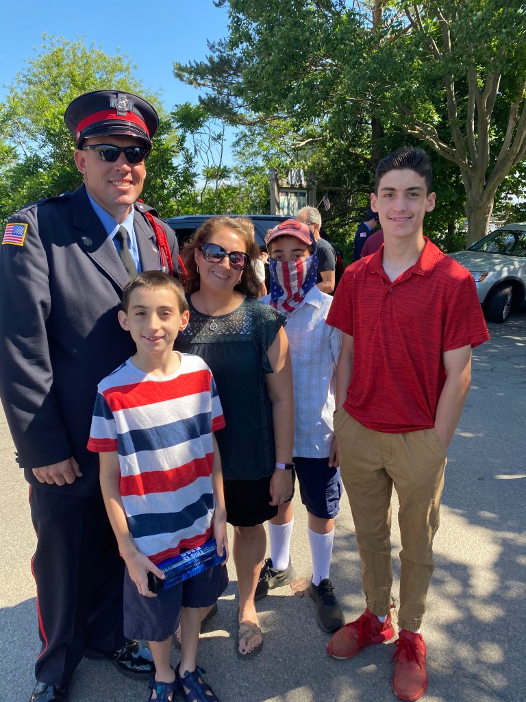 I know I make him crazy though he never admits it and I’ll admit he makes me crazy. But he’s my hero and my rock. This is what Fire Fighter Sunday looks like in Fire our family. It is about loving him, showing up for him, being together as a family in a world that wants us to go running in different directions. It is about listening to and honoring every name that is read in the roll of honor. It is about loving the sweet sound of Amazing Grace on the bag pipes. It is about holding back tears or letting them freely flow when you hear the bell ring and the reading of the Fireman’s Prayer. It is about honor, love, respect, and sacrifice. This is Fire Fighter Sunday.