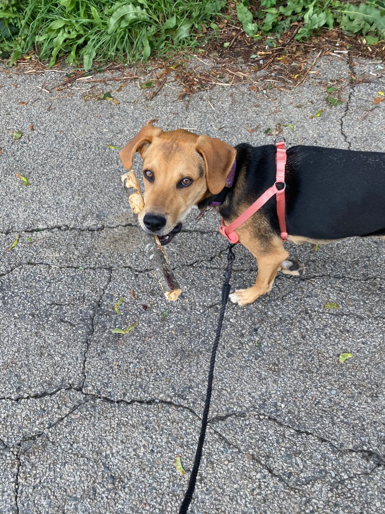 Sometimes you plan and you accomplish. Sometimes you plan and life throws you a curveball. A curveball like being woken up at 5am to the teenager asking if we might be concerned that there was about an inch of water in the basement. We jumped out of bed like, well like our basement was flooding. Hubby immediately got to work getting the water out. By the time I got all boys off to school I began cleaning up while he continued dry vaccing and getting rid of anything that would retain moisture that could cause mold. This was not what I had in mind for my day. I was thinking a run and a pedicure, some writing, etc… But when life throws ya lemons it’s time to count your blessings. We are thankful the teenager wakes up at 5am. We are thankful there wasn’t more water. We are thankful not much was ruined. We are thankful for an afternoon nap before the boys got home. This could have been much worse, tonight we are thanking God that it is not. I hope you all fared well through the storm and that you all are healthy and safe. And just for a smile- I’ve included a photo of my cute pup who had the best walk once she found a good stick and held it for the entire walk-avoiding puddles as always-which was no easy task today!