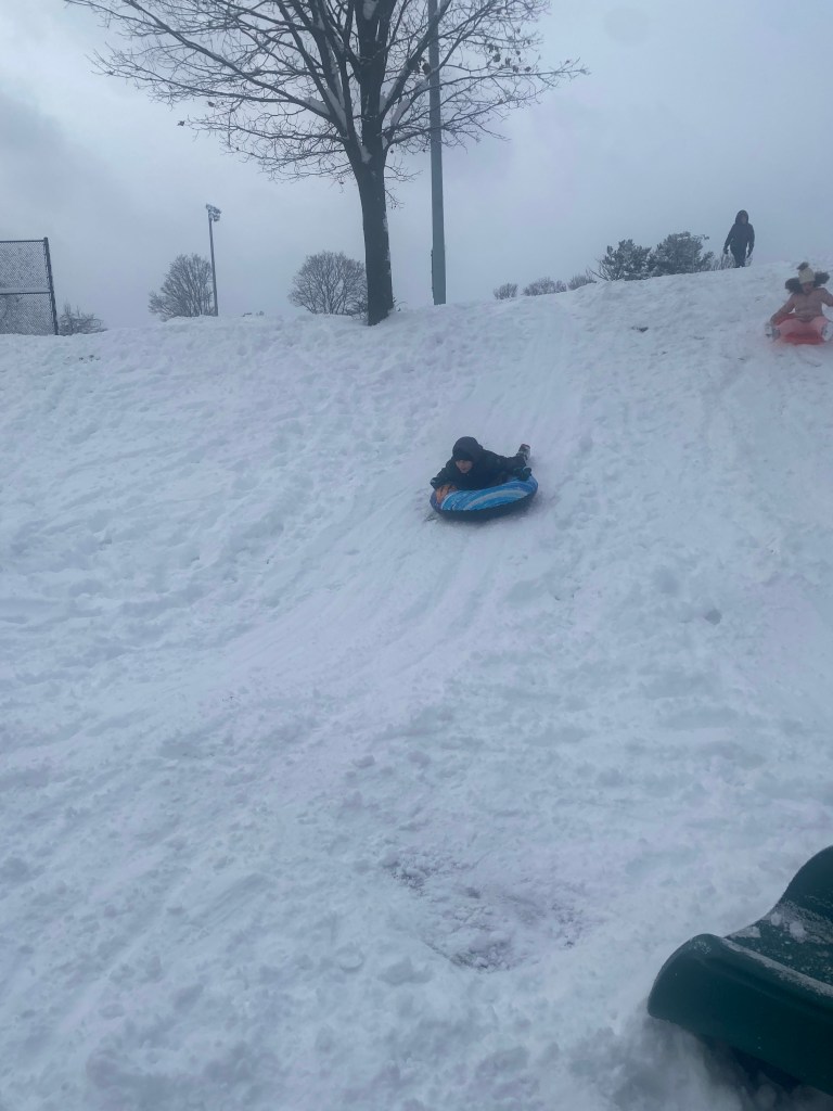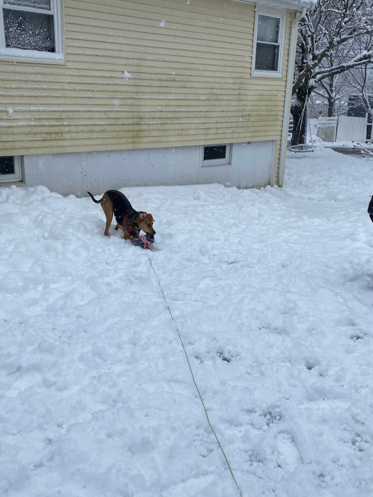 As Covid cases continue to spike and we all live in the uncertainty of the day by day, in this New Year I want to share with you the importance of living in the moment and looking for joy in every day regardless of what life throws your way. After a week away together as a family, we are now out of vacation mode and ponder with no real certainty when the hubby/daddy will be home from work. I know this carries as much disappointment for him as it does for us, but even still, we must press on. Today was the first snow day of the year, and what a great one it was. The snow glistening on the tree branches looked magical. All of my kids played in the snow and acted like kids. Today they were not too old or too cool. That brought me such joy and laughter. I watched them be silly and play together. It was a great day. And April, well she’s living her best rescue dog life!