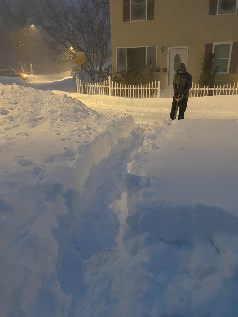 Sometimes during a storm, I wish he were here with us. Did I say sometimes? I meant all the time. Over the years I have gotten used to it, kind of like working weekends and holidays. The boys and I have our routines and such, but the unspoken word around here is that a piece of us is usually missing. Today was no different. The only thing different is that these boys are another year older and another year stronger. The last time we had this much snow dumped on us, Christopher had stitches in his hand and couldn’t get his hand wet, Evan was too little to help, and Logan was so little I was afraid of losing him in the snow! I don’t miss hubby for the muscle and the help though, I just miss having him home with us in general and having him be part of our regular snowy day routines.