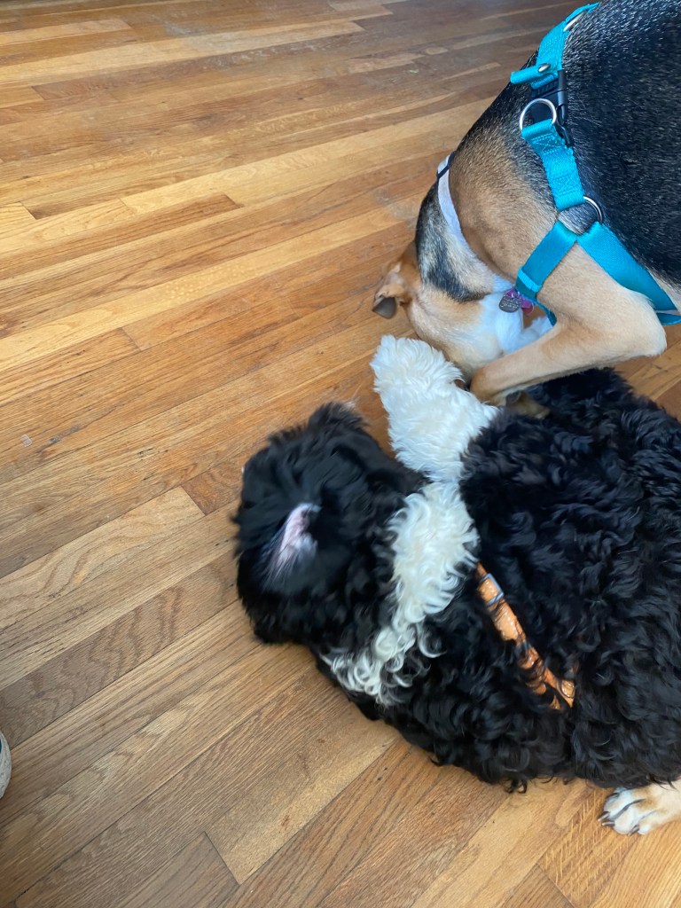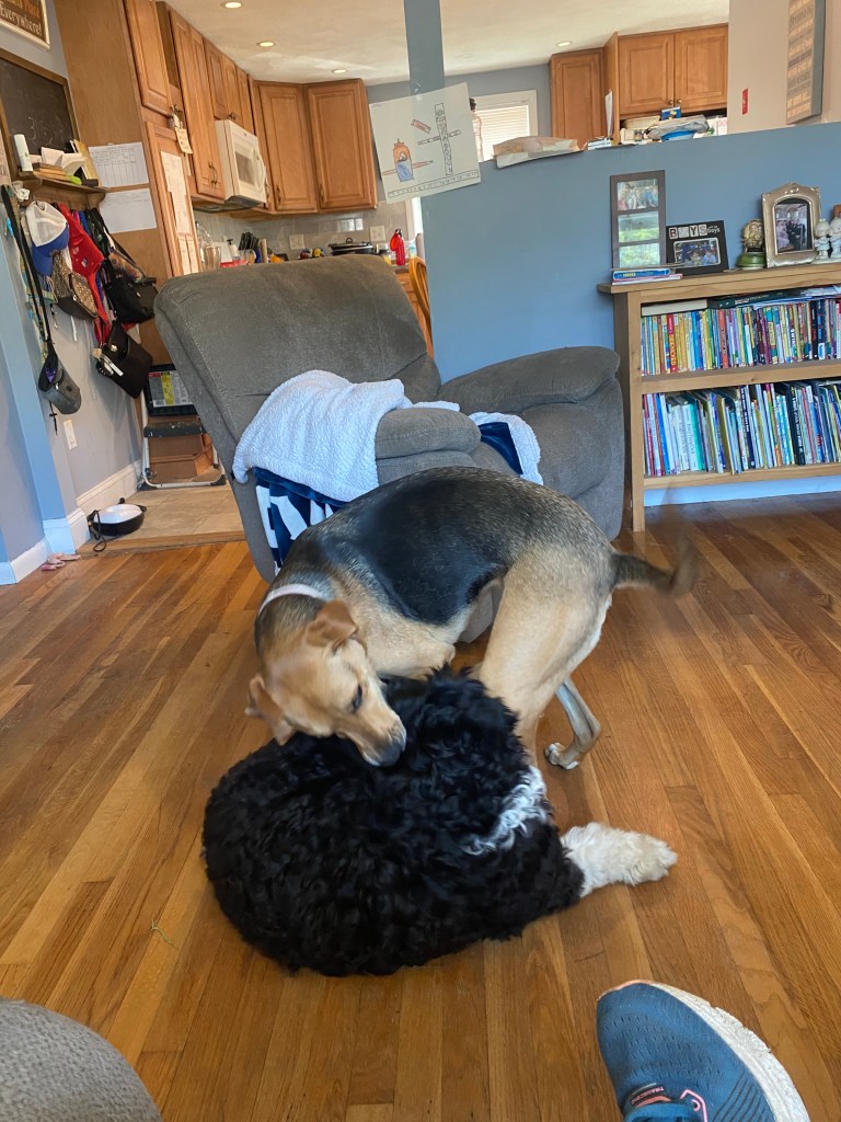 April is living her best life with Archie as her temporary live in companion. Luckily for us, he has been a great house guest. After three nights, this is what I now know… Pup sleepovers are like kid sleepovers except without junk food and barking instead of giggling.